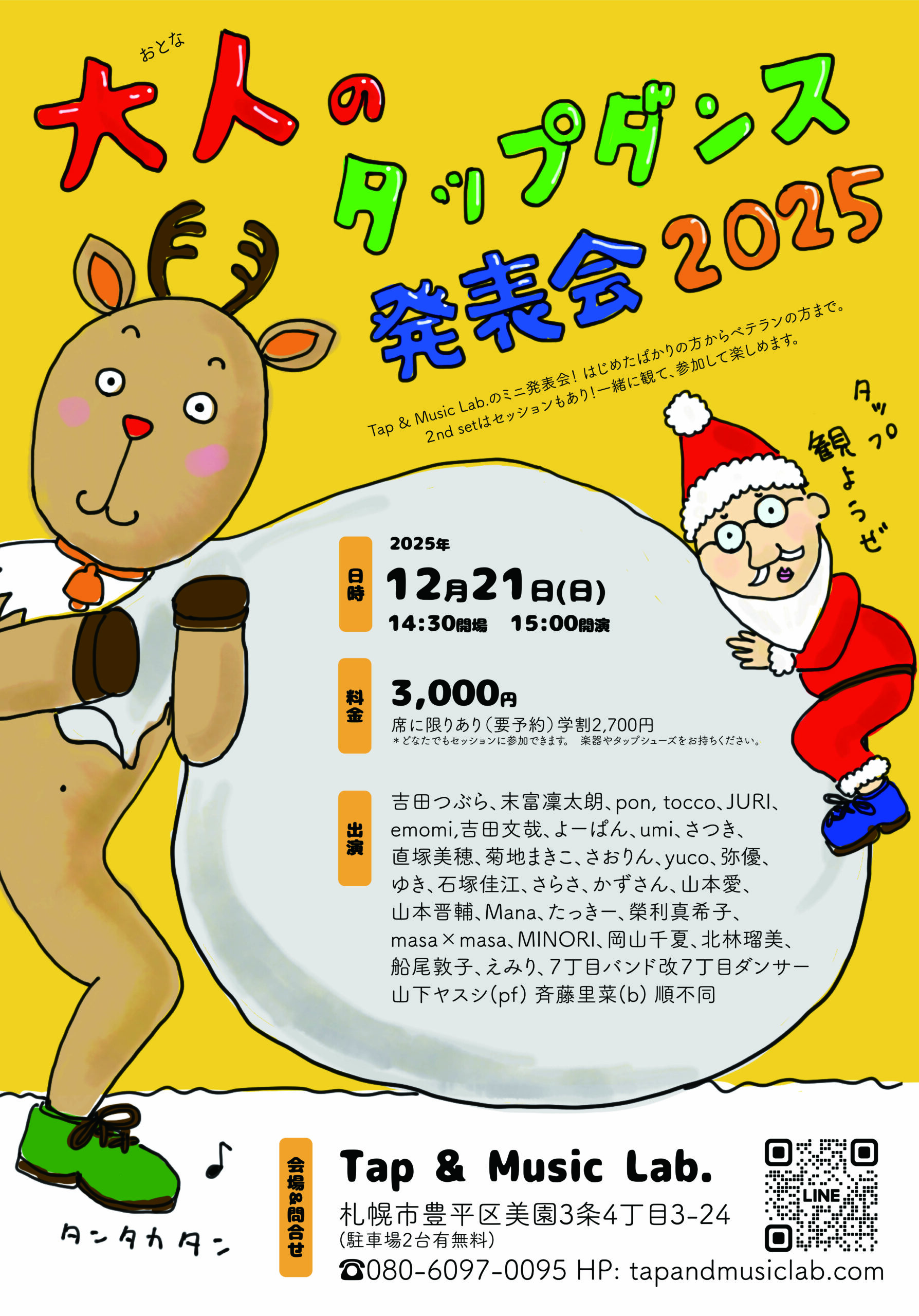 久しぶりのスタジオでのミニ発表会です。タップダンスを観たことない人も、長年やっている方も楽しめるライブです。